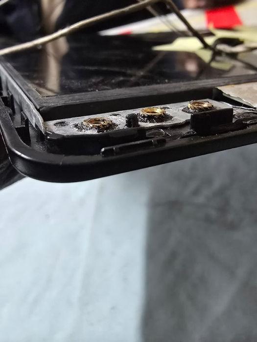 on both broken ( left ) + not broken ( right ) side of the screen back & body top covers - screw holders were reinforced back in places, blocks were formed & spaces for cables remained. hinges were adjusted ( not too tight for covers to snap again & not too loose for screen to fall on open / close )
